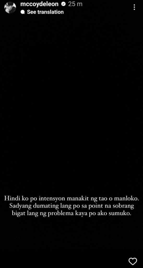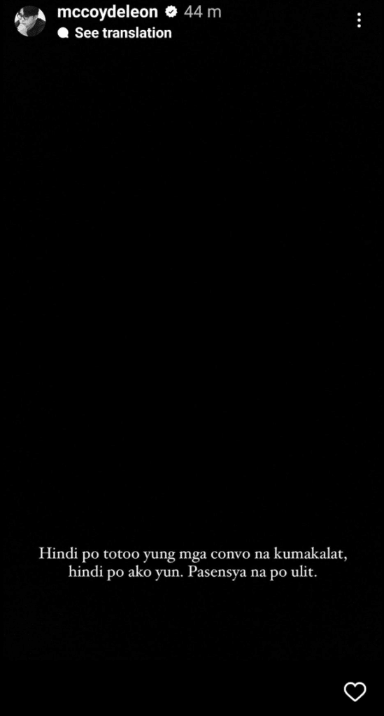 McCoy made the confirmation in a series of Instagram Stories on Wednesday, January 4. In his Instagram updates, the “Deleter” actor wrote: “Sorry po, pasensya na po sa inyong lahat… Hindi po totoo ‘yung mga convo na kumakalat, hindi po ako ‘yun. Pasensya na po ulit.”
